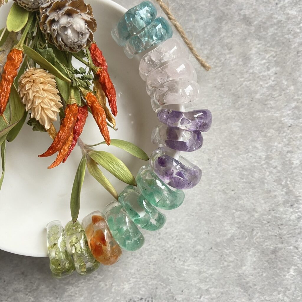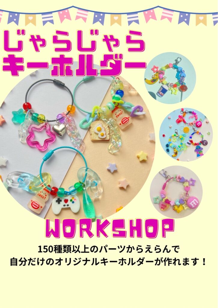 お好きなパーツとお好きなカラーのキーリングを選んで、ビーズなど混ぜながら自分だけのオリジナルじゃらキーを作成できます。
